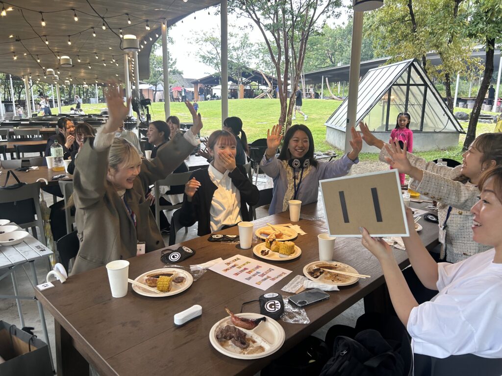 BBQでお昼ご飯を食べつつ、レクリエーションを行い、社員や内定者同士の親睦を深めました。
